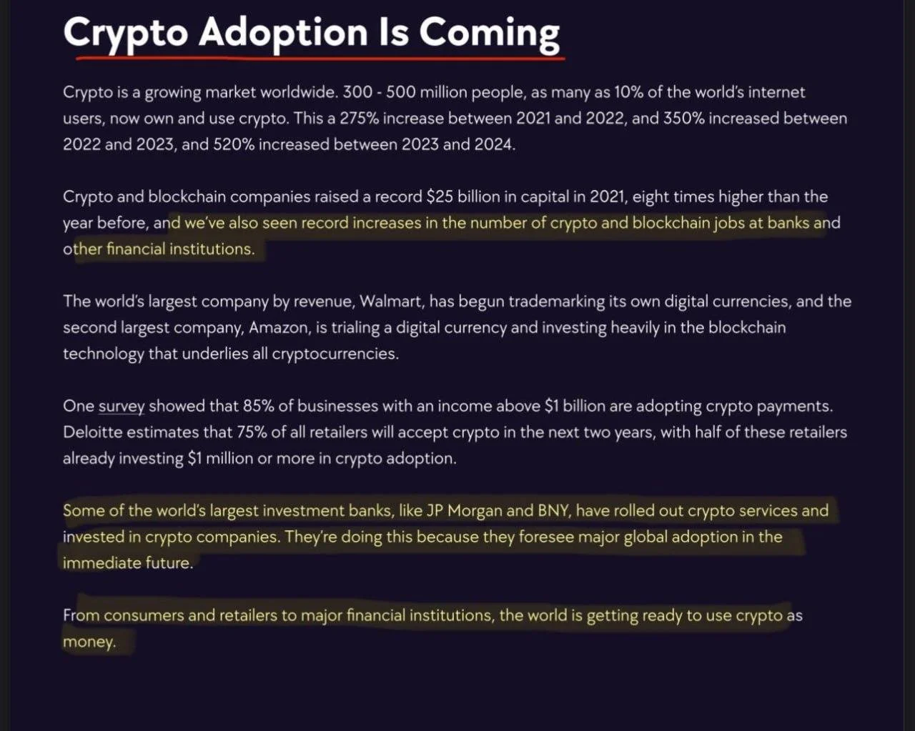 JP Morgan. BNY Mellon. Goldman Sachs. They all foresee global adoption in the IMMEDIATE FUTURE