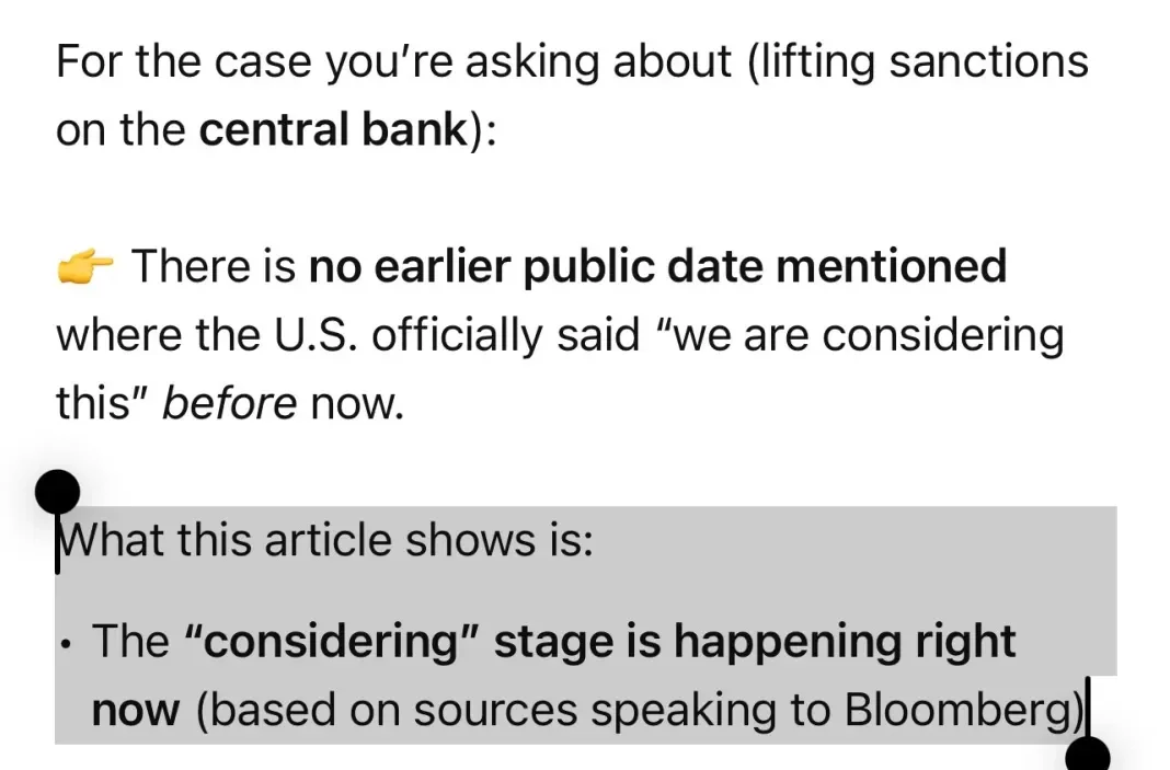 US government is literally working right now on lifting the sanctions on Venezuela Central bank