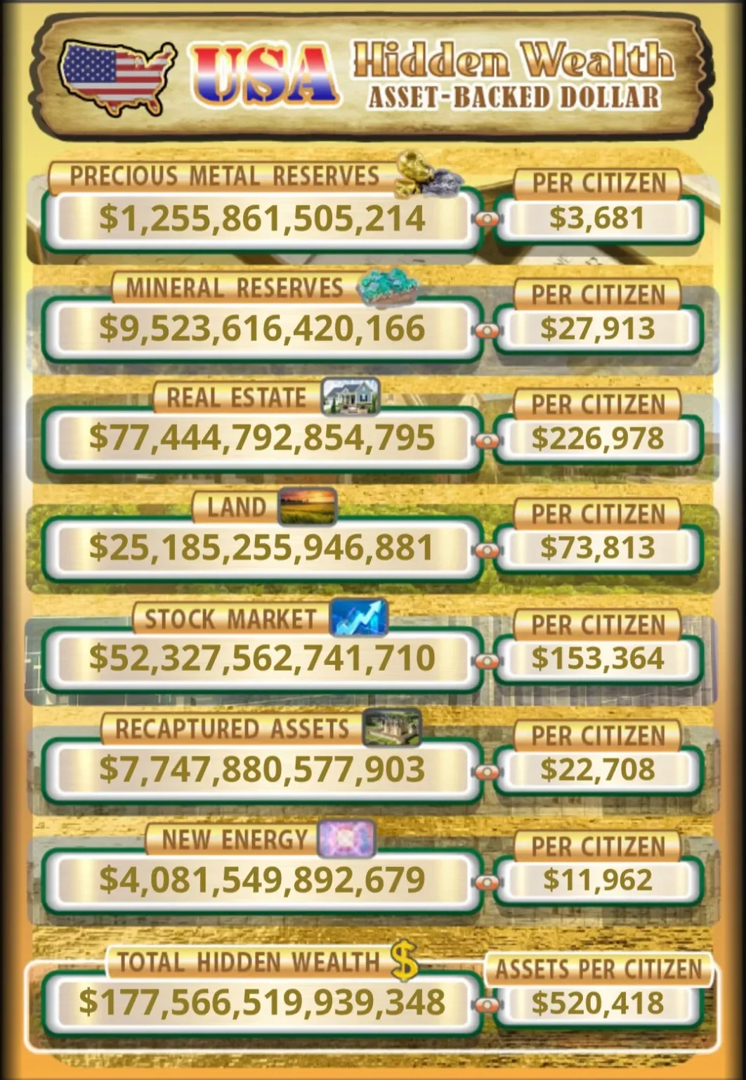 On top of what is owed to us (520k per citizen). When the Global Currency Reset takes place… The world will be better off and at peace,