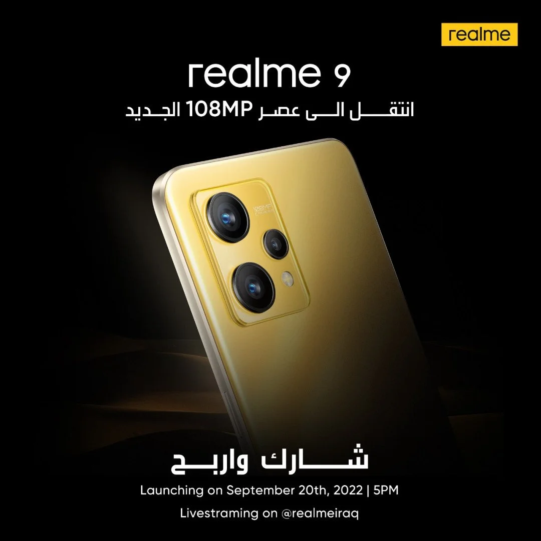 Realme 9 "Best 108MP" Device In Iraq Will Be Launched On September 20